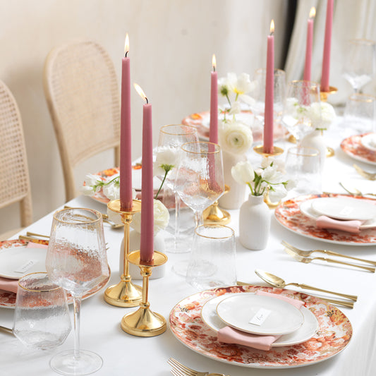 12 Taper Candles and 12 Gold Virtu Candlesticks