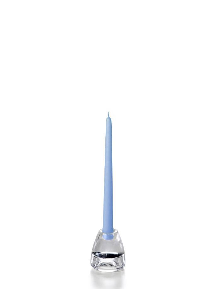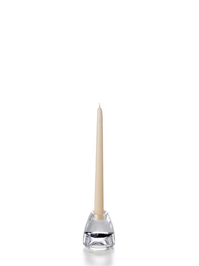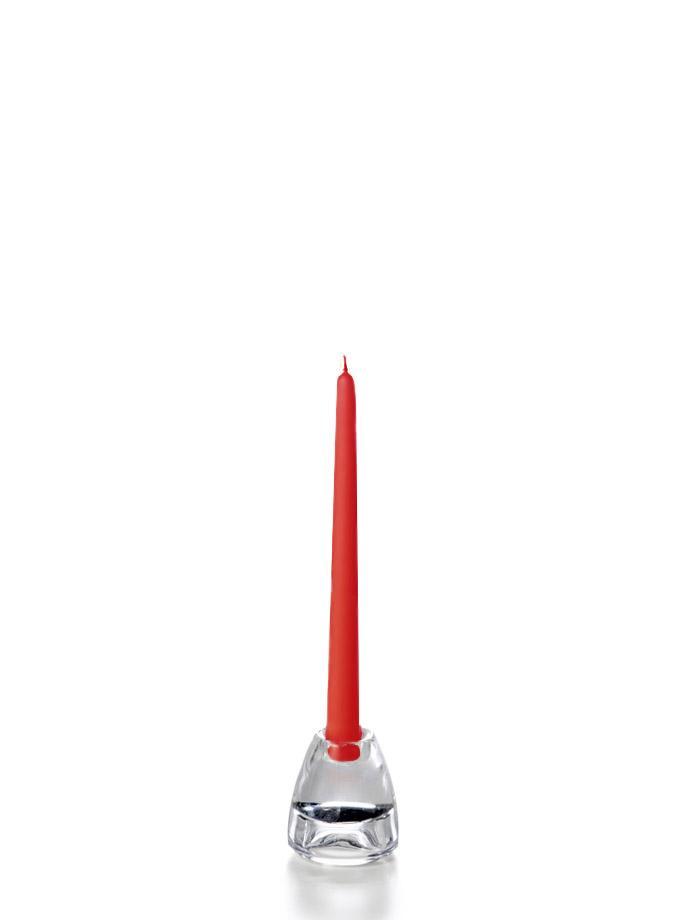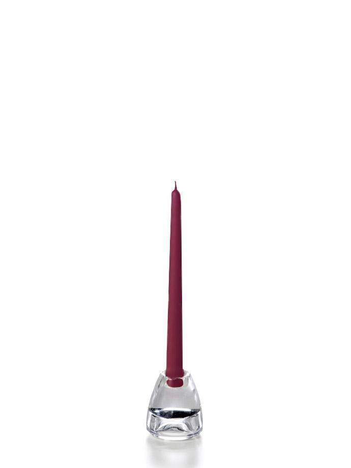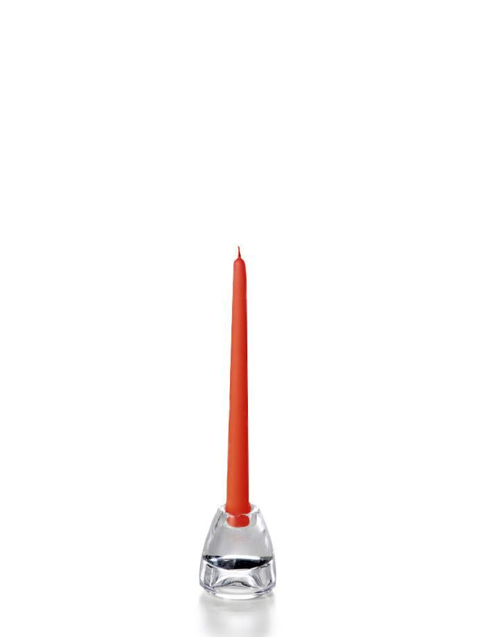 Our wholesale 10" taper candles (144/case) are high quality and the best wholesale prices. Our taper candles are handcrafted and hand over-dipped in a colourful palette of 45 trendy colours. The outer core of this taper is made of an extremely hard-shell wax crafted with the highest quality paraffin wax and all cotton wick that prevents the candle from dripping. Add some elegance to enhance your wedding centrepiece by displaying unscented taper candles in various heights to create a warm candlelight harmony. We have been a favourite with brides-to-be, weddings planners and home decorators. Tapers fit any standard taper holder. Keep wick trimmed to 1/4". Keep away from drafts. Exposing your tapers to a draft may result in some dripping and/or smoking. Candle holder not included.