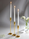 As you light your chosen taper candles, watch as the enchanting glow dances on the polished surface of the gold metal holders, casting mesmerizing shadows and reflections around your space. Enjoy hours of serene, soft lighting that not only illuminates but also inspires.