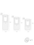 Size : 2.75"D x 4.125", 6.25", 8.25"H