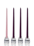 The 15” Advent taper candle set is ideal for this symbolic occasion. These advent taper candles are handcrafted and hand over dipped in purple and pink. The outer core of this taper is made of an extremely hard-shell wax crafted with the highest quality food grade paraffin wax, and all cotton wick which prevents the candle from dripping. Advent tapers fit any standard taper candle holder. Smokeless and dripless. Burn time is approximately 13 hours. Made in Canada. Holder not included.