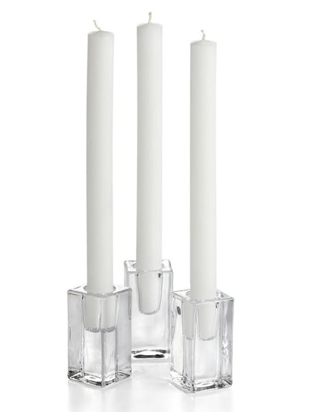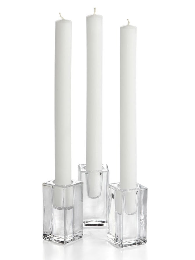 Introducing our elegant and affordable Formal Dinner Candle Set, complete with 20 exquisite 10" Formal candles and 20 clear glass square block holders. Whether you're hosting a special occasion or simply adding a touch of sophistication to your dining table, this set is perfect for creating a luxurious atmosphere without breaking the bank.