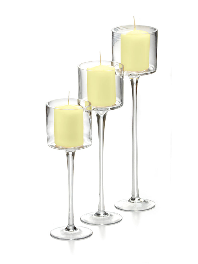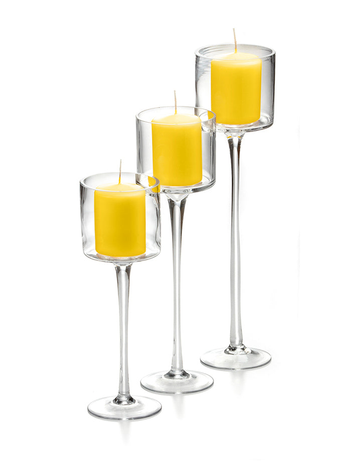 Elevate the look of any tablescape with this reiteration of the Yummi Monet stemmed set with slim pillar candles. Create a lux setting by combing the sleek stemmed Monet glass with slim pillar candles, adding style and sophistication to your dining area while also creating an airy minimal feel. This compact design offers practicality thanks to its minimal footprint on surfaces as well as increased visibility when compared against other similar size centerpieces due to its slimline profile. With all Yummi products, this set stays true to our heritage of bringing you quality and affordability.