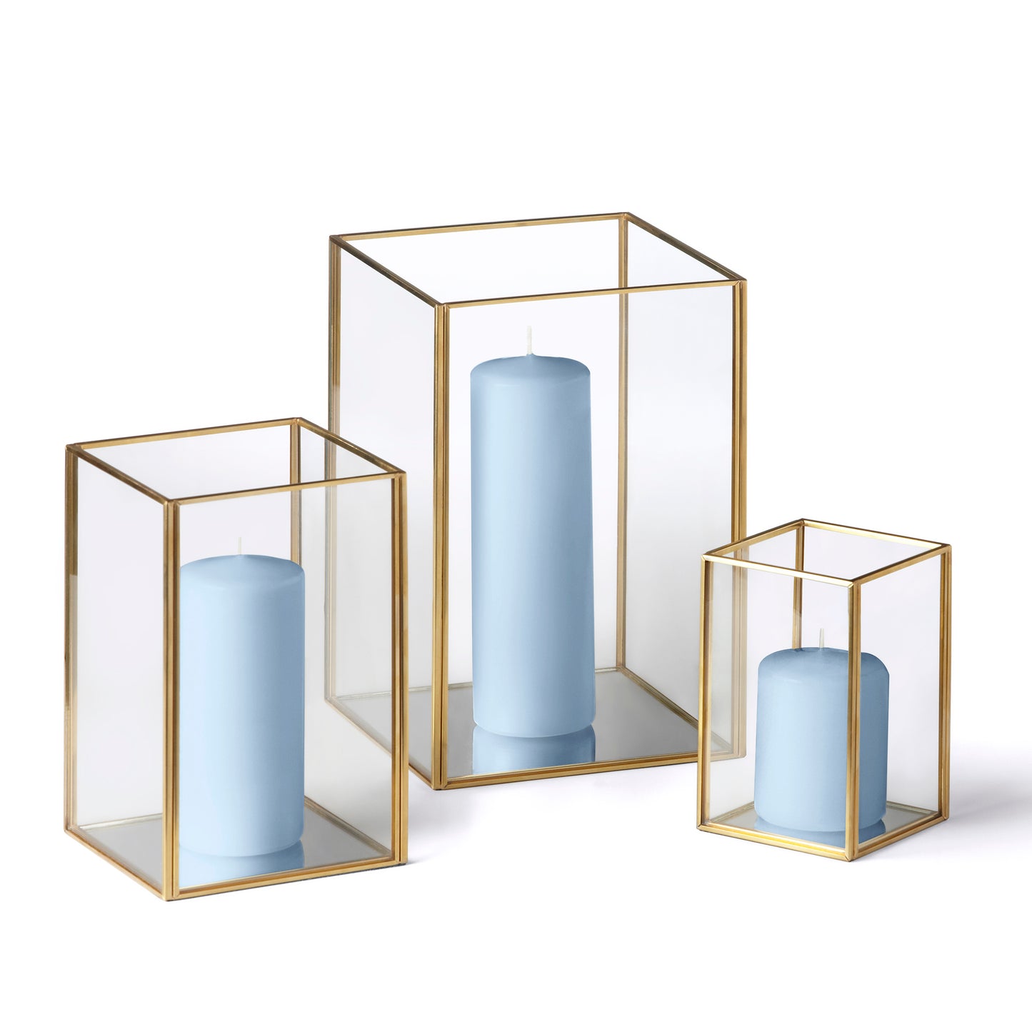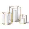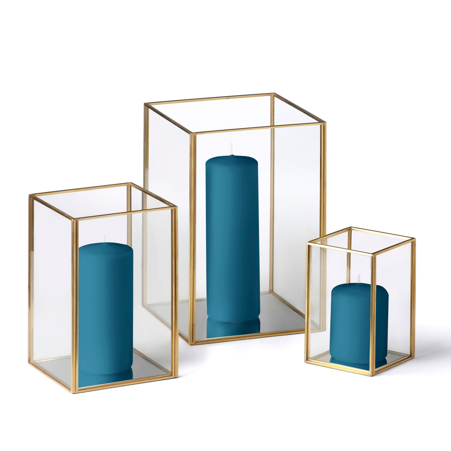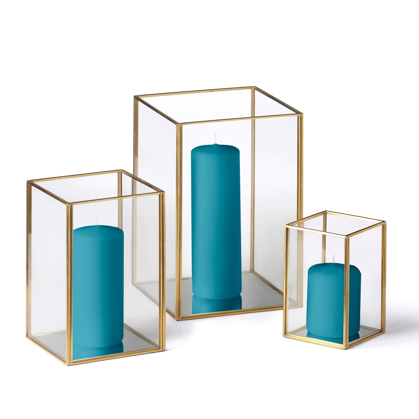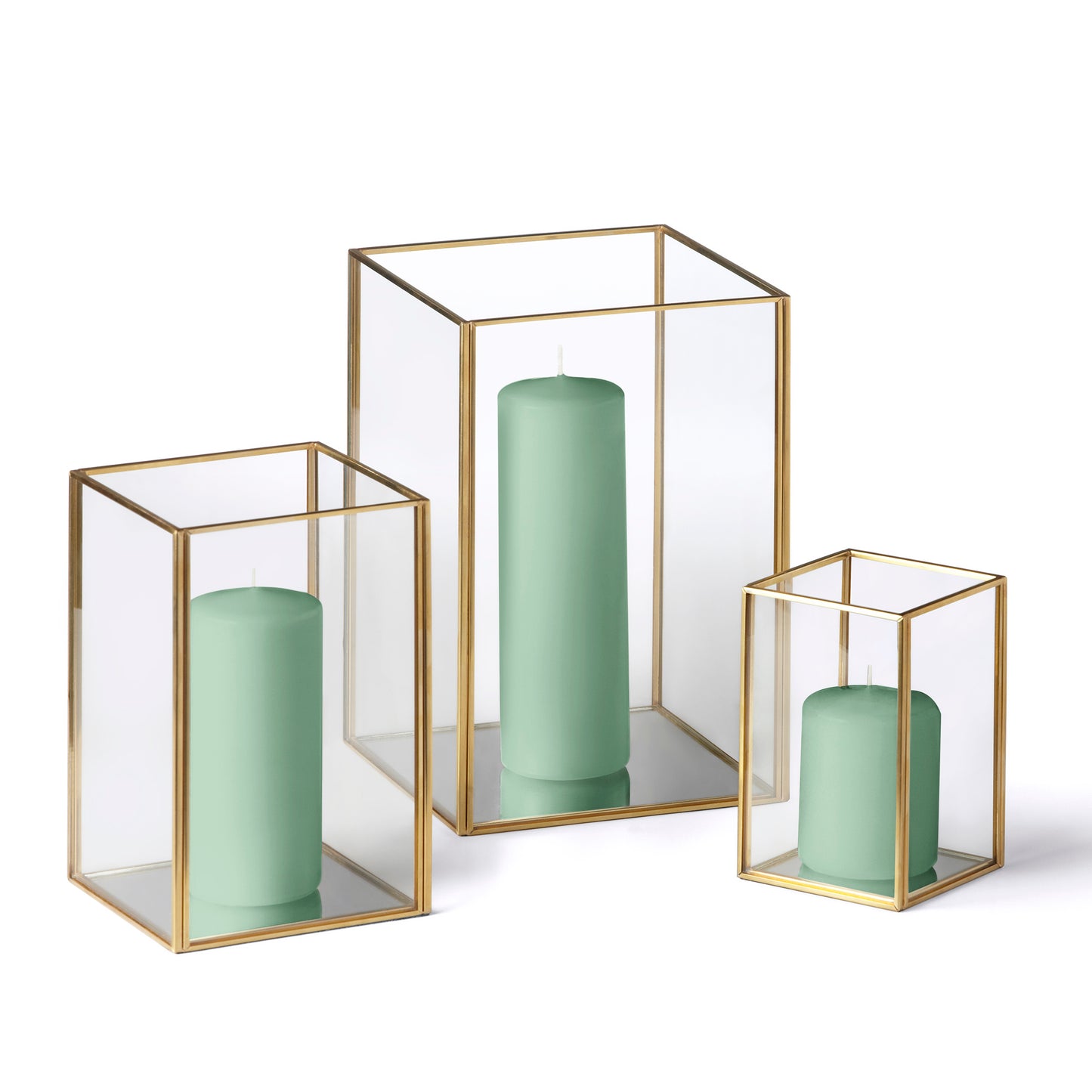 The accompanying Gold Lantern Holders perfectly complement the Slim Pillars. These holders feature intricate geometric patterns that beautifully diffuse the light, creating a soft and flickering ambiance. The luxurious gold finish adds a sophisticated touch, making these pieces both functional and stylish. Perfect for weddings, events, or home decor, this set combines style and functionality."