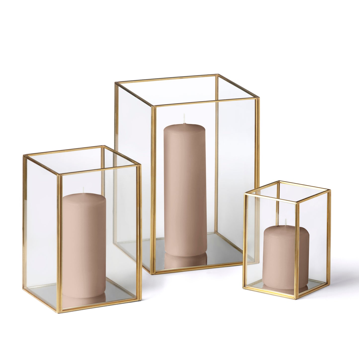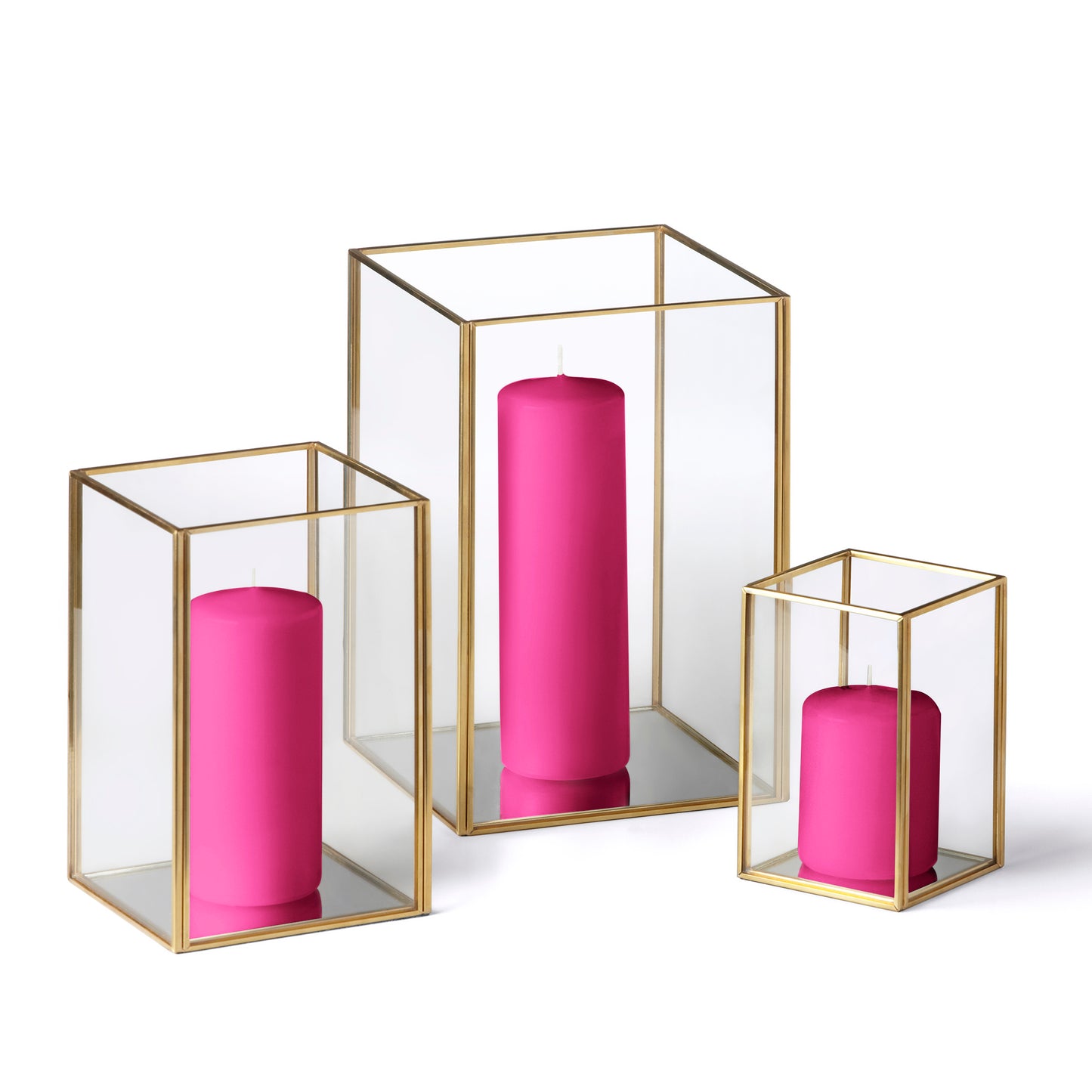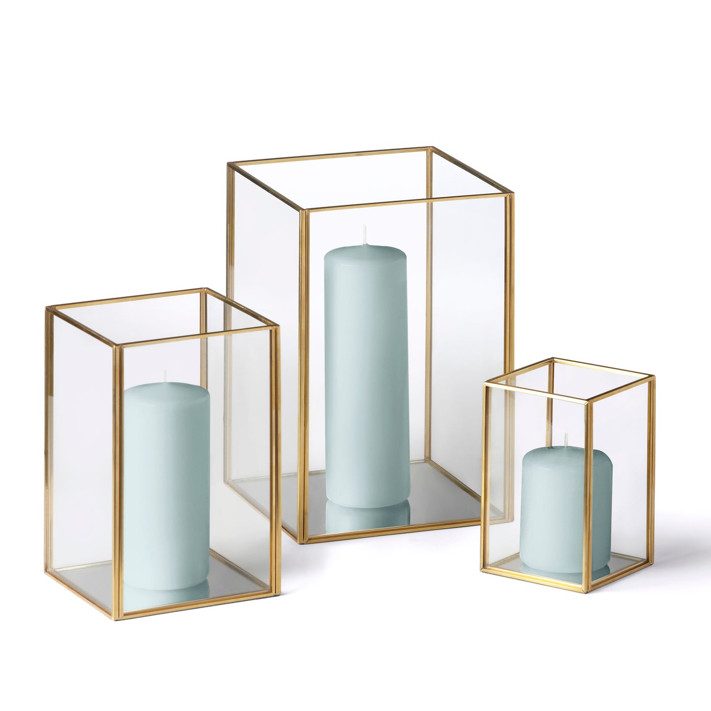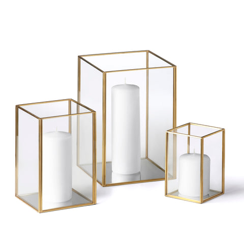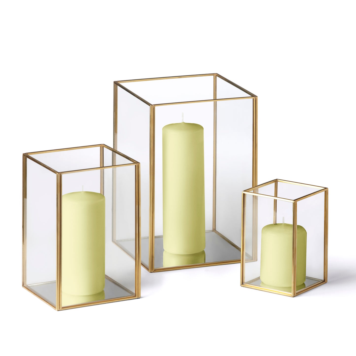 The accompanying Gold Lantern Holders perfectly complement the Slim Pillars. These holders feature intricate geometric patterns that beautifully diffuse the light, creating a soft and flickering ambiance. The luxurious gold finish adds a sophisticated touch, making these pieces both functional and stylish. Perfect for weddings, events, or home decor, this set combines style and functionality."
