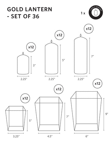 12 Gold Lanterns - 3.25"x 3.25"x 5"H