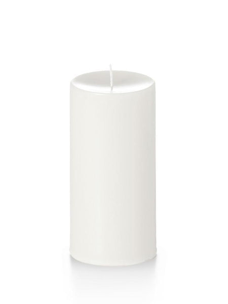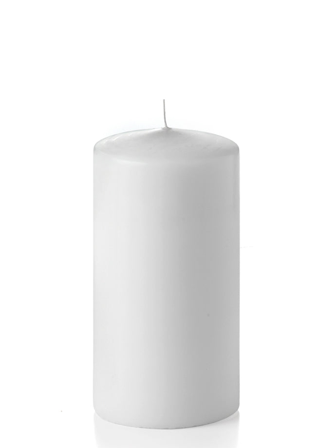 The luxurious, oversized unscented 4” x 8” column pillar is available in white or ivory, and provides a warm and translucent glow. Make a dramatic statement by grouping several column pillar candles of varying heights together in your arrangement, or opt for an understated, yet bold look with a single candle. Crafted with the highest quality food- grade paraffin wax and all cotton wicks. For best results, when burning for the first time, burn for approximately 3 to 4 hours to create an outer shell. Burn time is approximately 120 hours.