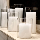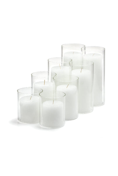12 Slim Pillar Candles and Cylinder Vases