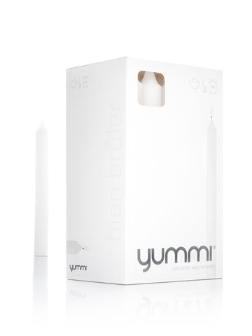 At Yummi Candles, we take great pride in crafting exquisite candles that create the perfect ambience with their hues. What sets our candles apart is our unique production process, starting with a white core. Our candles are crafted with a pure, unscented, white wax core. This serves as the foundation for the rich light that our candles emit. Subsequently a professionally trained chandler adds color through an hand over-dipping process. This technique ensures a uniform and vivid color layer on the outside. This offers a brilliant aesthetic and light effect, when the candle is lit the warm glow brings out the contrast between the white core and the vibrant outer layer.