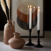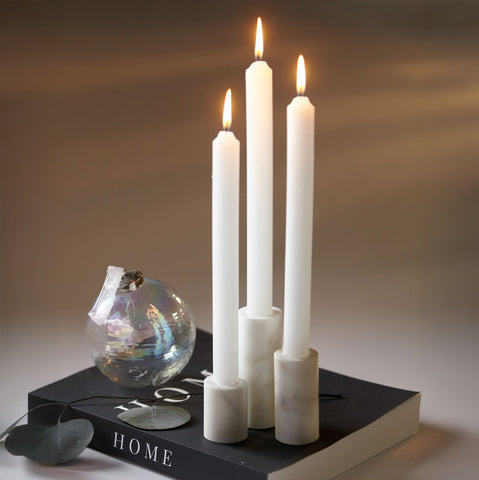 The 8” formal taper candle features a straight edge that remains the same thickness throughout the length of the candle and is an elegant touch for any wedding or special event. Available in white and ivory, these candles are crafted with the highest quality food grade paraffin wax, and all cotton wick that prevents the candle from dripping. Formal taper candles fit any standard taper holder. Keep wick trimmed to 1/4" long. Avoid any wind or draft that may affect the quality of burning. Smokeless and dripless. Burn time is approximately 7 hours. Holder not included.