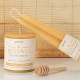 Yummi beeswax taper candles are professionally hand-dipped in Canada. Our tapers burn clean and bright and emit a soft and soothing scent of honey.