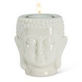 Add ambiance and tranquility to any setting with this serene porcelain Buddha Head Tealight Holder. Crafted out of porcelain, this detailed Buddha head sculpture in white fits most tealight candles easily to bring a touch of Zen wherever you place it.