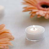 When quality and value is essential for wedding centerpiece or event decorations, our unscented clear cup tealight candles offer a clean look that will suit your needs for that special day. Paired with our glass tealight and votive candle holders, these clear cup tealights will create a beautiful candlelight glow and warm ambiance for home décor, wedding receptions, and other special occasions. Smokeless and dripless. Burn time is approximately 4-5 hours.