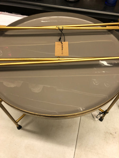 Enameled Tray On Folding Stand, Grey - Matte Brass Finish, Set Of 2