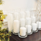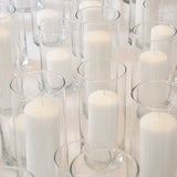 Let us help you take the guesswork out of designing the ultimate event centerpiece. The Yummi Slim Pillar Candles and Cylinder Vase Set of 12 glass candle holders and 12 slim pillar candles is available in a selection of 45 candle colours, and is the ideal set to pick when designing on a budget. This high quality premium offering cannot be matched in terms of value or versatility. The celebrated slim pillar candle is well known for its long burn time and consistency, making it ideal for candle arrangements used for weddings, events and special occasions. Get creative and use this set to fashion a distinctive atmosphere and warm ambiance with the glow of candlelight. Burn time is approximately 15-55 hours.
