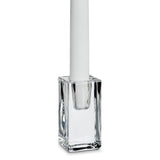 This simple and modern taper candlestick is the perfect holder for any taper candle. Made from a block of clear glass, it will enhance most decor. Tapers sold separately.